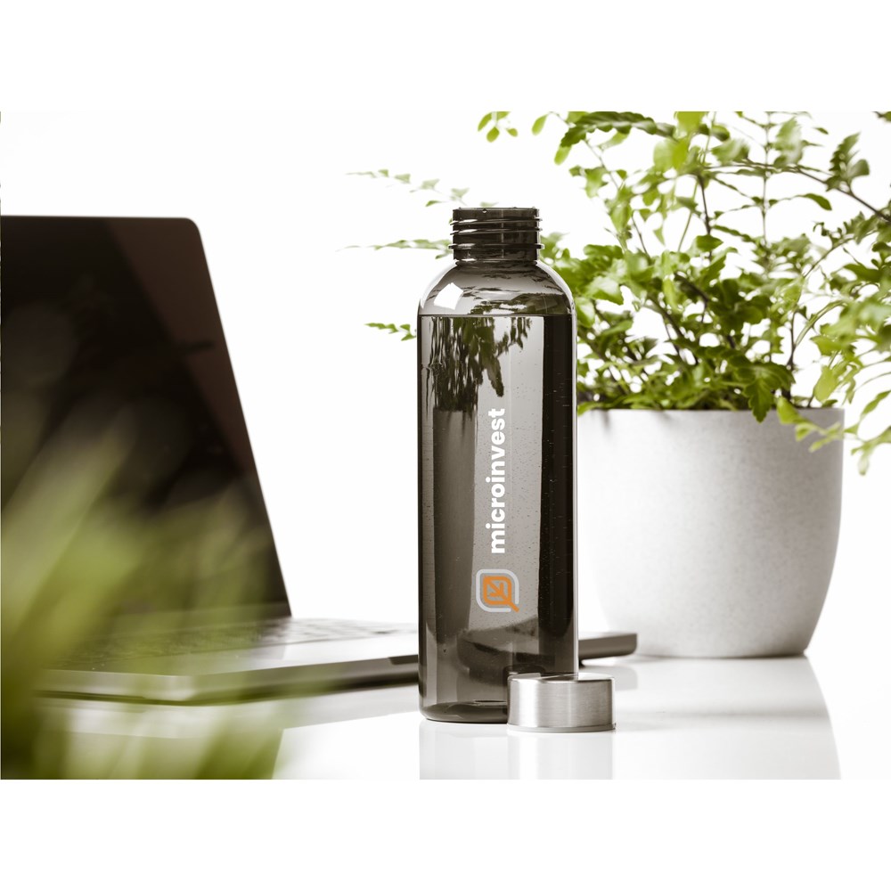 This water bottle is made from 100% RPET and has a stainless steel leak proof screw cap. With an attractive and slim design, it is particularly comfortable to hold. Not dishwasher-safe. Capacity 500 ml. RCS-certified. Total recycled material: 82%.