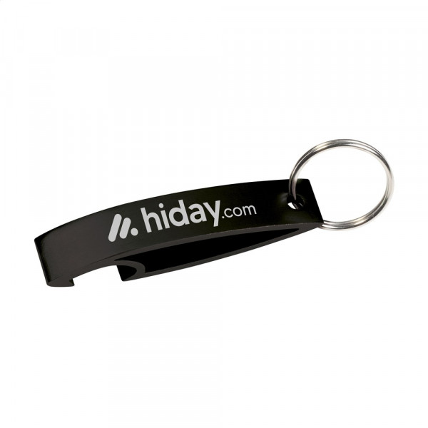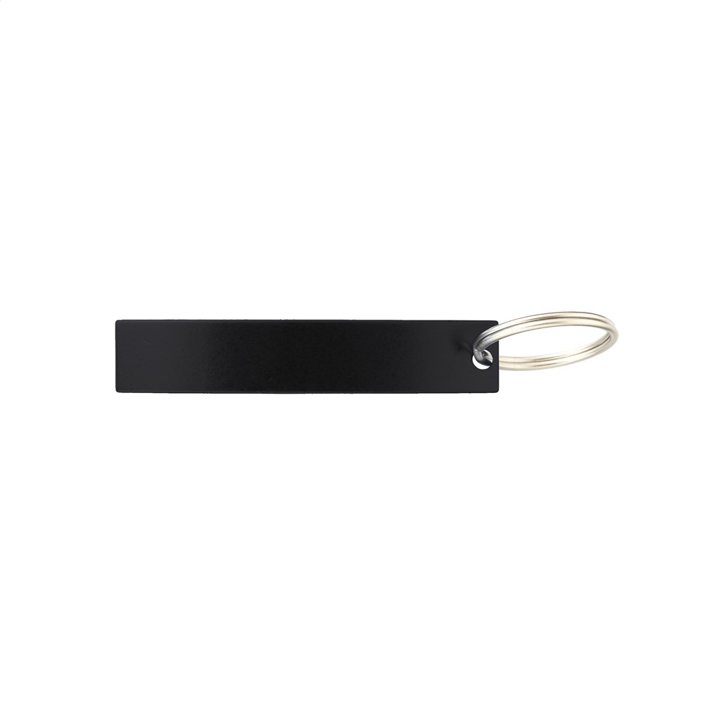 Lightweight aluminium bottle opener with key ring.
