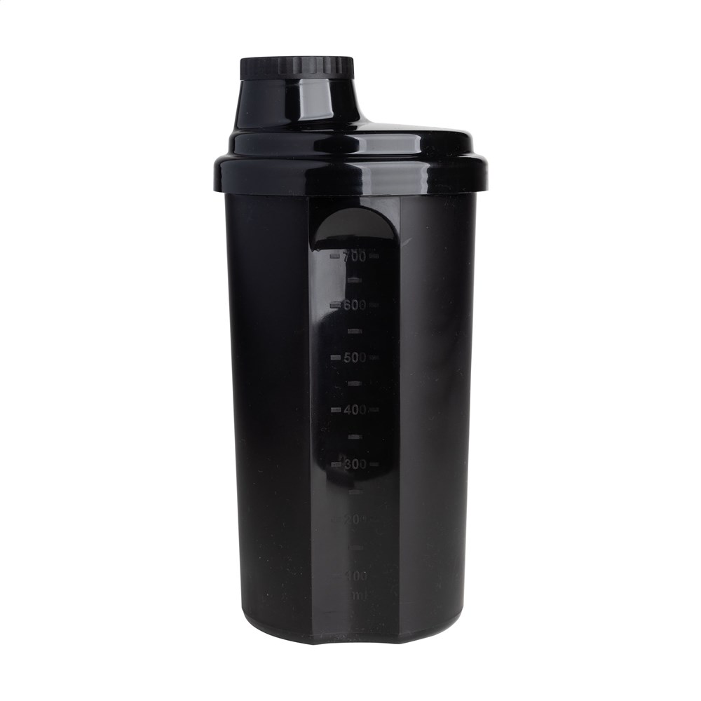 Lightweight, plastic shaker for effortless mixing of protein drinks and nutritional supplements. The screw cap features a lockable drinking opening. Thanks to the grid, you make delicious, airy drinks with just a few shakes. The shaker has a content display in both ml and oz. Fully detachable for easy cleaning. Leak proof. Dishwasher-safe. Washing by hand is recommended to preserve the imprint. Capacity 700 ml. Made in Europe.