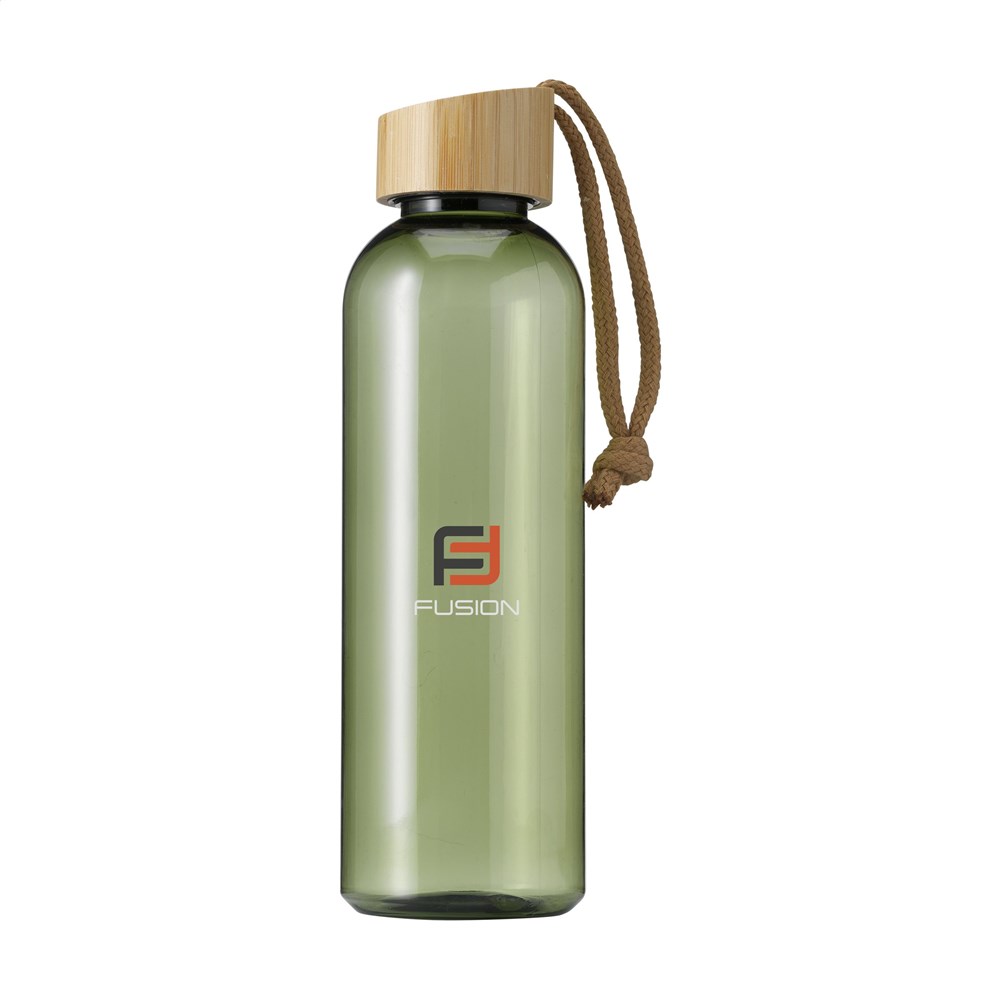 Reusable, recycled water bottle. The body is made from 100% RPET. With leak proof bamboo screw... more