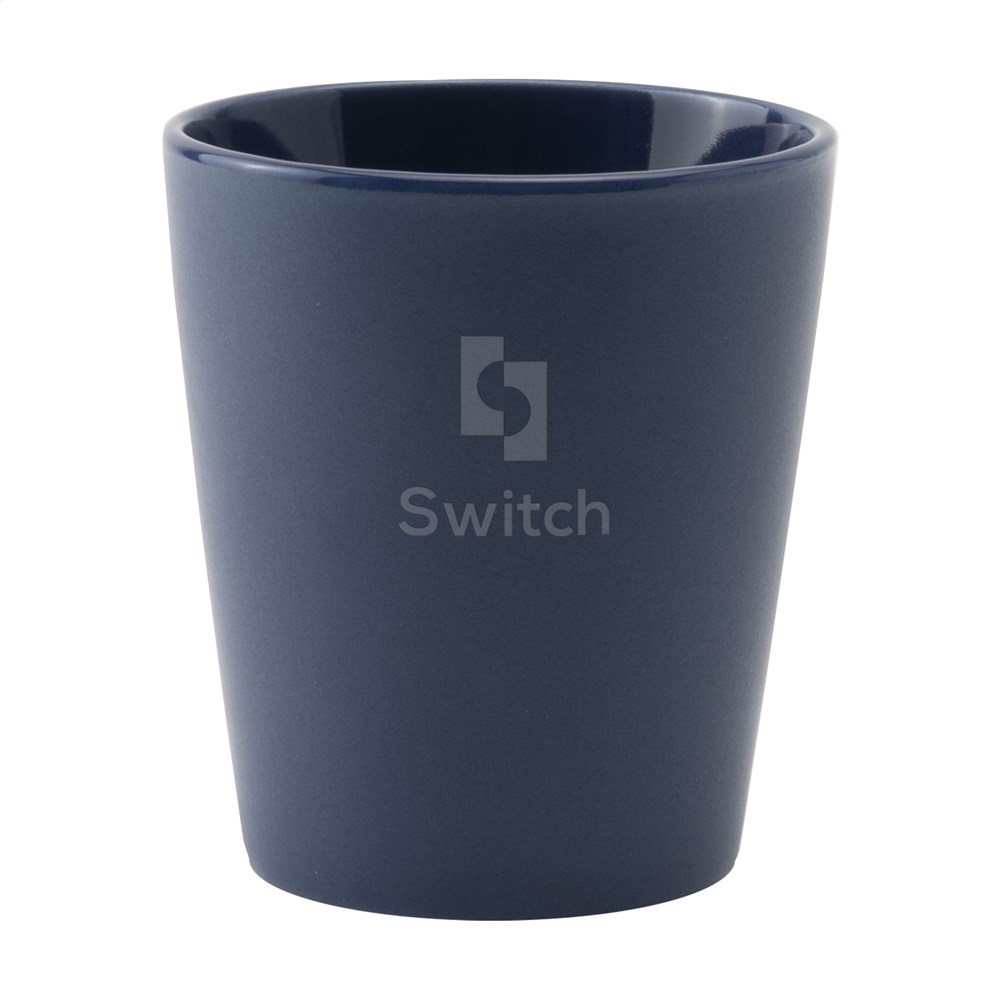 Trendy mug without handle. Made of high-quality ceramics. With matt outside and high-gloss inside. Suitable for all coffee machines. Capacity 190 ml. Dishwasher-safe. The imprint is tested and certified dishwasher-safe: EN 12875-2.