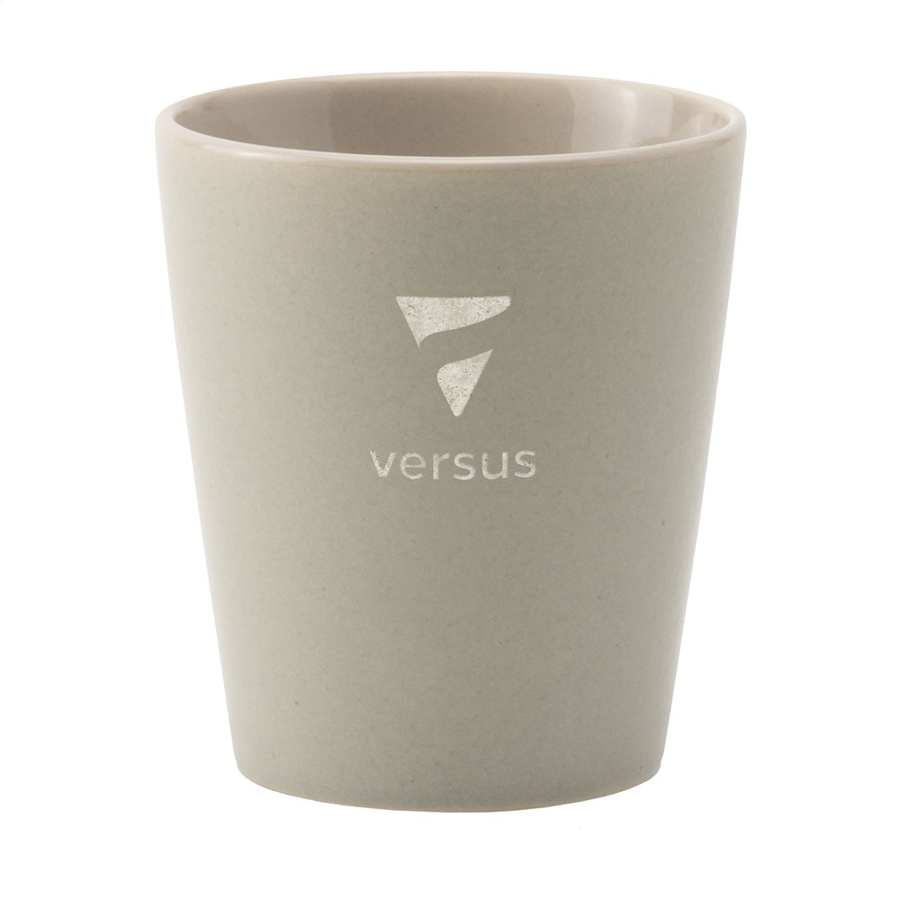 Trendy mug without handle. Made of high-quality ceramics. With matt outside and high-gloss inside. Suitable for all coffee machines. Capacity 190 ml. Dishwasher-safe. The imprint is tested and certified dishwasher-safe: EN 12875-2.