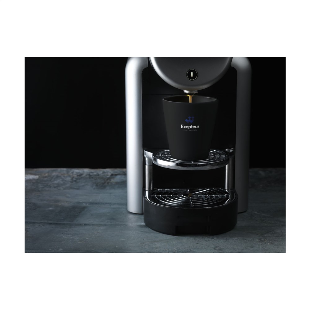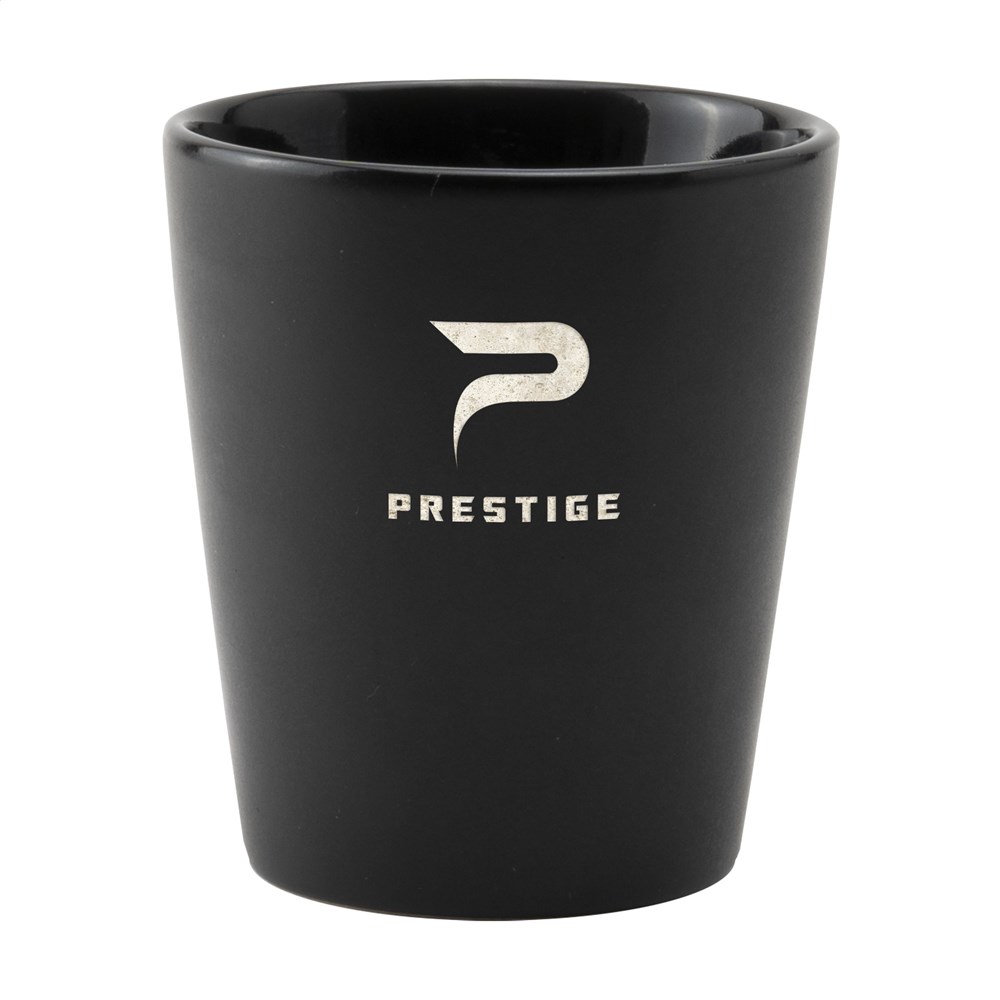 Trendy mug without handle. Made of high-quality ceramics. With matt outside and high-gloss inside. Suitable for all coffee machines. Capacity 190 ml. Dishwasher-safe. The imprint is tested and certified dishwasher-safe: EN 12875-2.