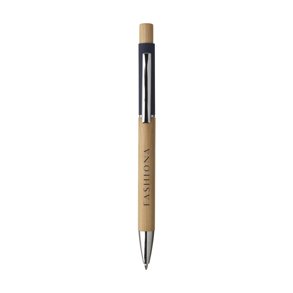 Blue ink ballpoint pen with barrel and push button made from FSC 100% certified bamboo. Metal... more