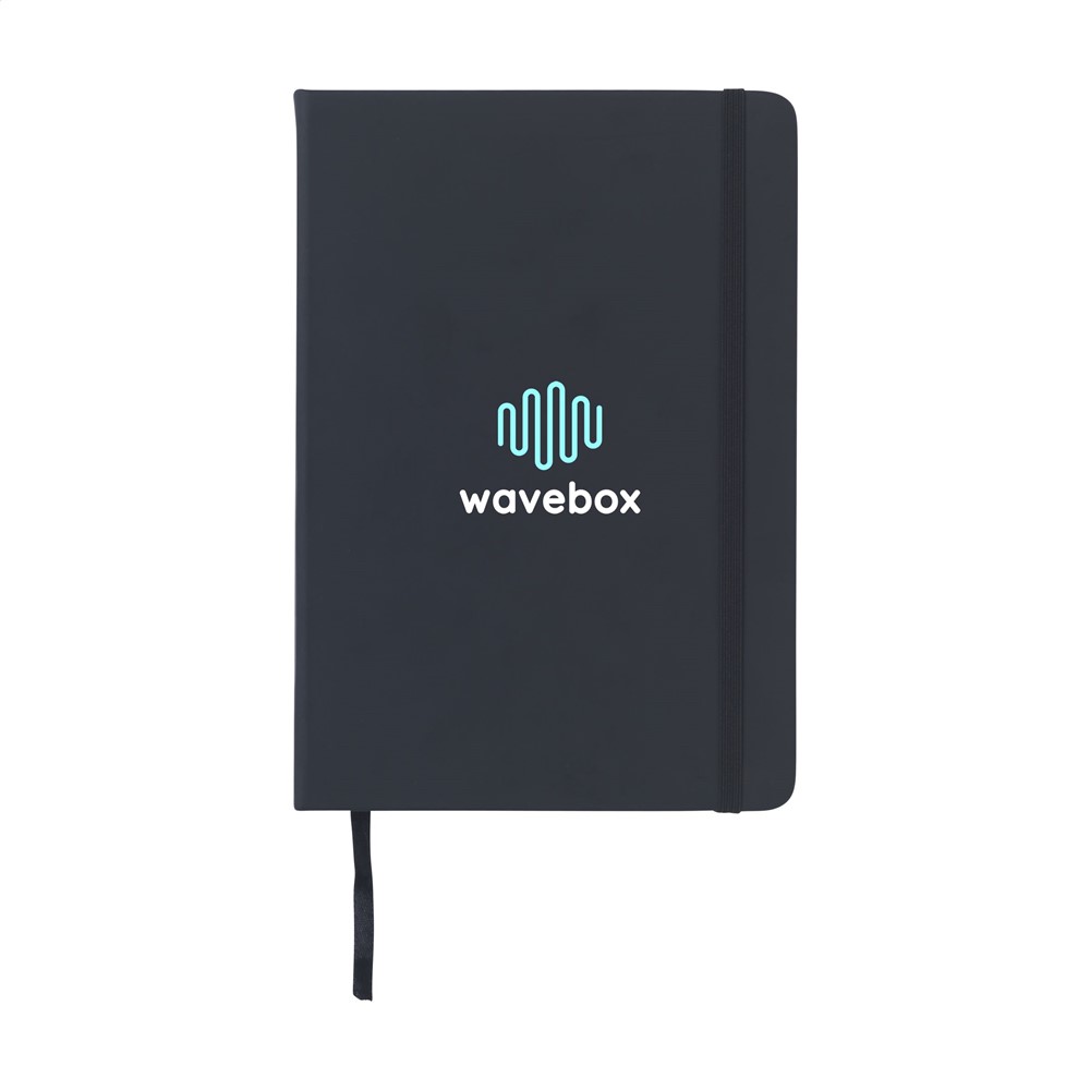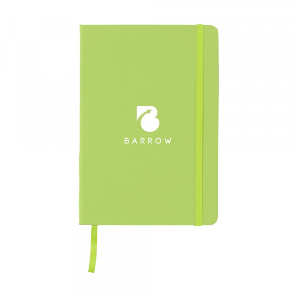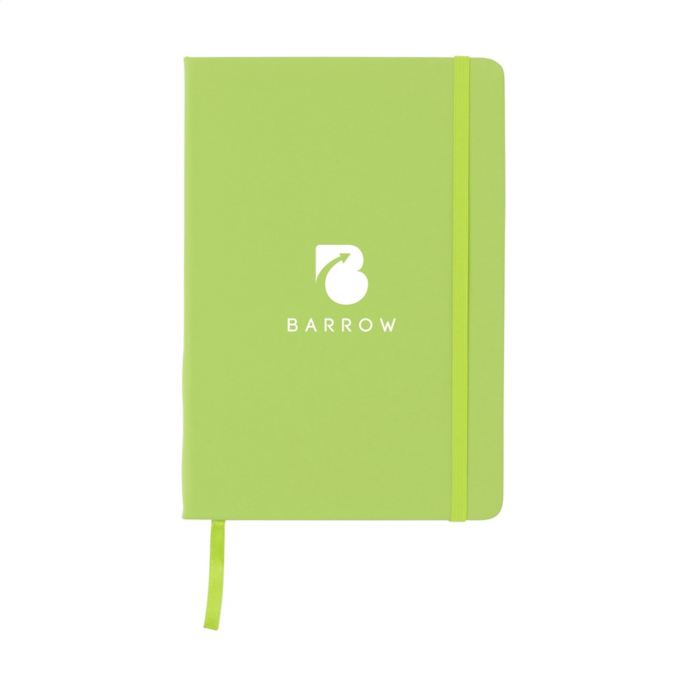 Practical notebook in A5 format. With hard PU cover, approx. 80 sheets/160 pages of cream coloured, lined FSC Mix certified paper (70 g/m²), elastic closure and ribbon marker.