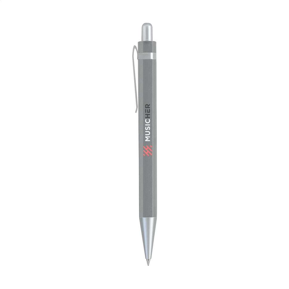 Blue ink ballpoint pen with steel clip. more