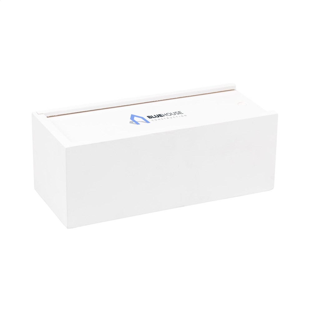 den stacking game (48 blocks). Tower dimensions 16.5 x 6 x 6 cm. Presented with a white, wooden box with sliding opening for easy storage. Incl. instructions. Packed individually.