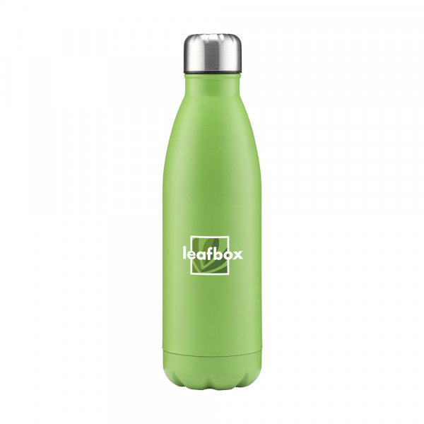 Single-walled stainless steel water bottle with leak proof screw cap. Not dishwasher-safe. Capacity 750 ml.