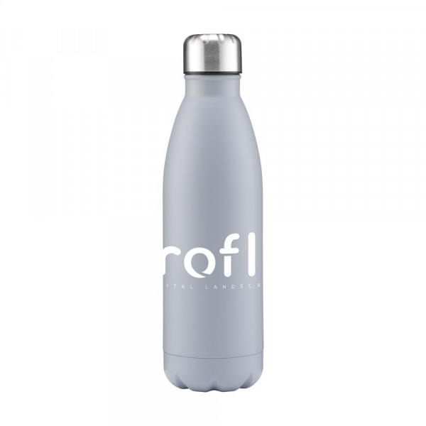 Single-walled stainless steel water bottle with leak proof screw cap. Not dishwasher-safe. Capacity 750 ml.