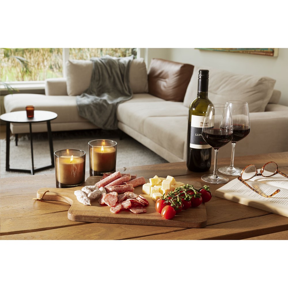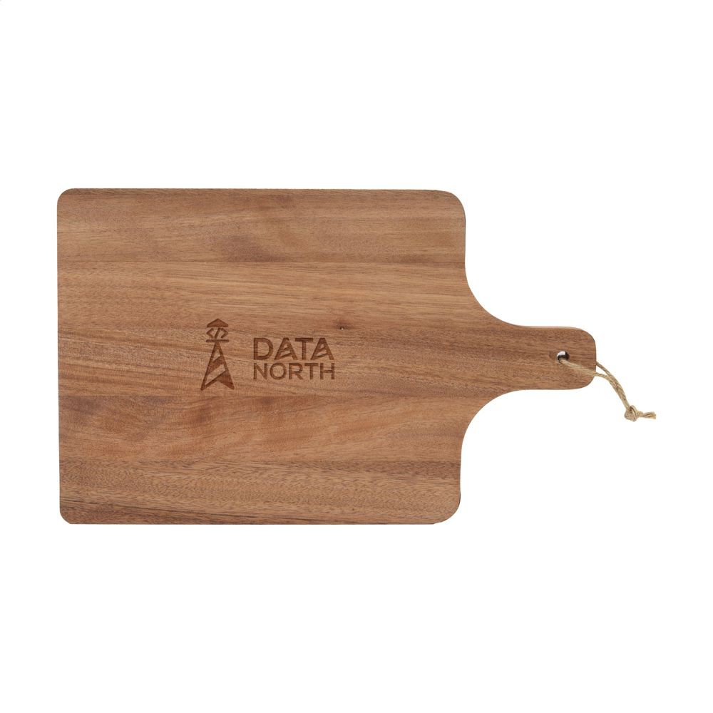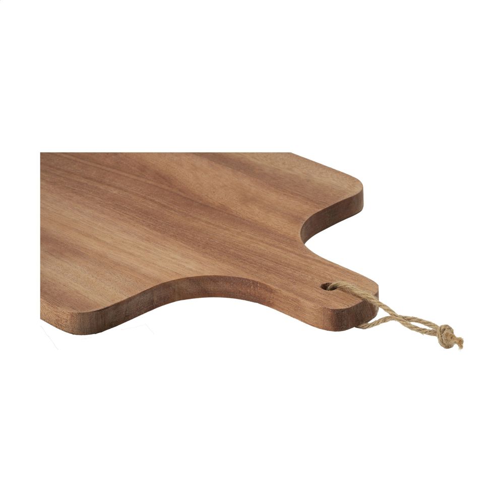Beautiful, spacious Wooosh serving board made from FSC 100% certified acacia wood, a robust type of wood with a warm appearance. The artistic characteristics of acacia wood include fine grain, a flame-like pattern and changing shades of colour all combining to give this board a unique character. This serving board has been carefully treated with a vegetarian soybean oil. Thanks to the bactericidal properties of acacia, this board is naturally hygienic. This serving board is not only functional but also a decorative showpiece. A handy string loop is practical and provides extra character. This board has a large serving area, perfect for stylishly presenting snacks or a tasty lunch. Let this beautiful board become an indispensable part of your culinary experience. Each item is supplied in a luxurious Wooosh gift box.