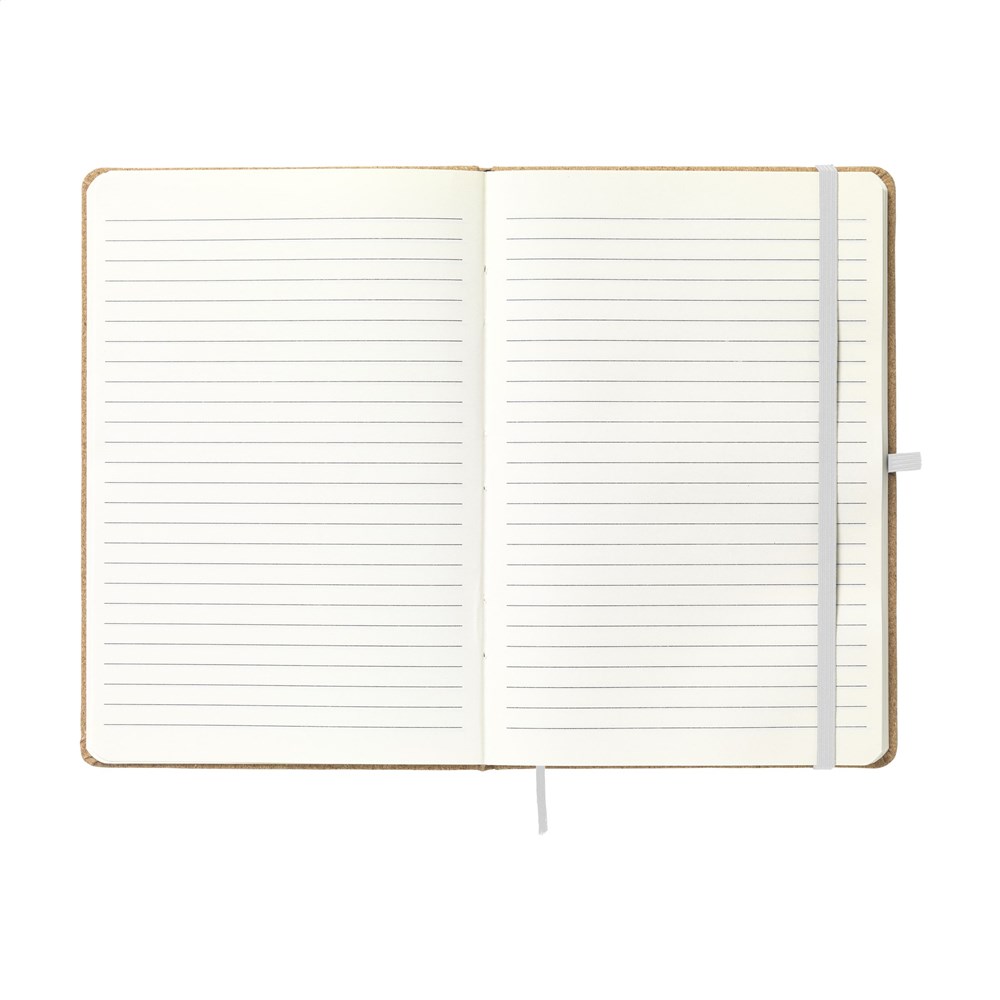 A5 size notebook with cork cover. Includes a pad with approx. 80 sheets/160 pages of cream-coloured, lined, FSC Mix certified paper (70 g/m²). With handy pen loop, rubber band and reading ribbon.