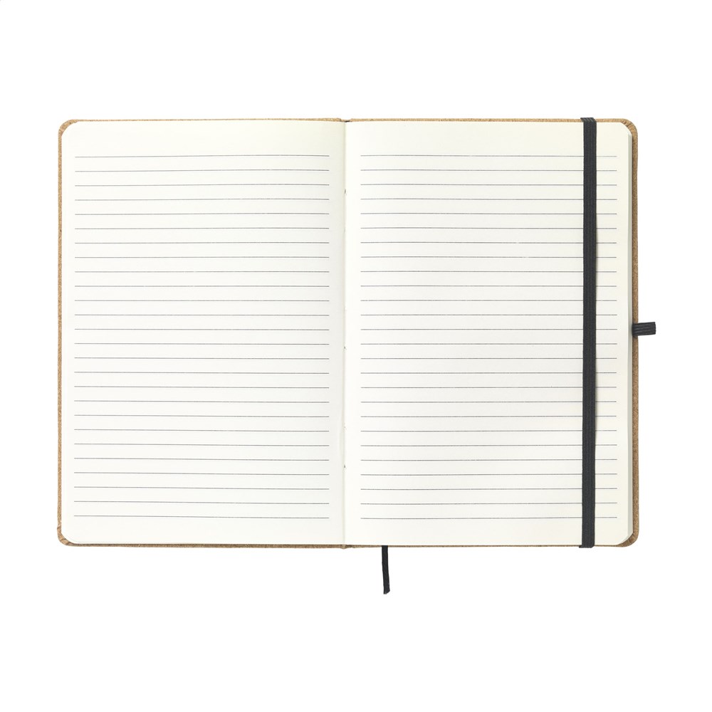 A5 size notebook with cork cover. Includes a pad with approx. 80 sheets/160 pages of cream-coloured, lined, FSC Mix certified paper (70 g/m²). With handy pen loop, rubber band and reading ribbon.