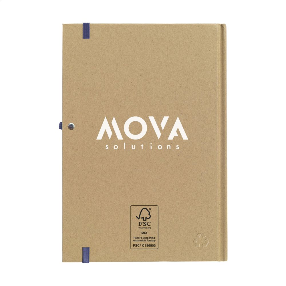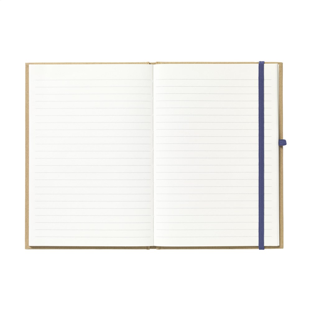 A5 size notebook made from recycled material. With approx. 80 sheets/160 pages of cream-coloured, lined FSC Mix certified paper (70 g/m²), handy pen loop and elastic closure.