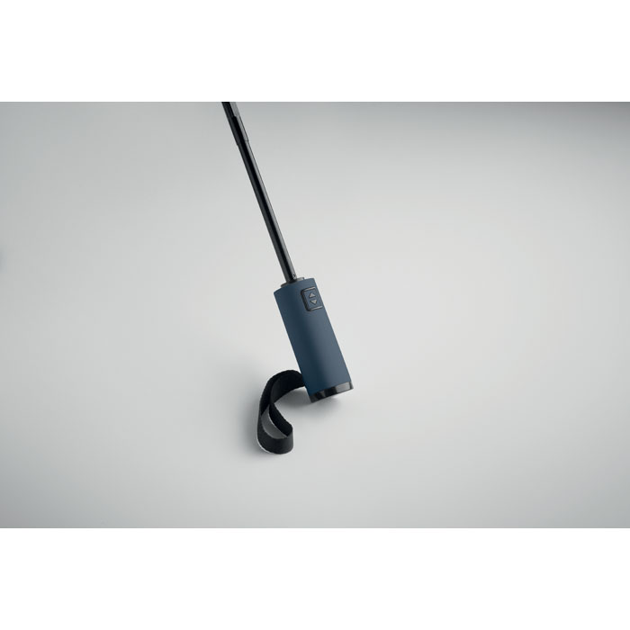 23-inch 3-fold reverse windproof umbrella made of 190T RPET pongee and matching pouch. Auto open and close, full black plating frame, fibreglass ribs, and a rubber-finished ABS handle.