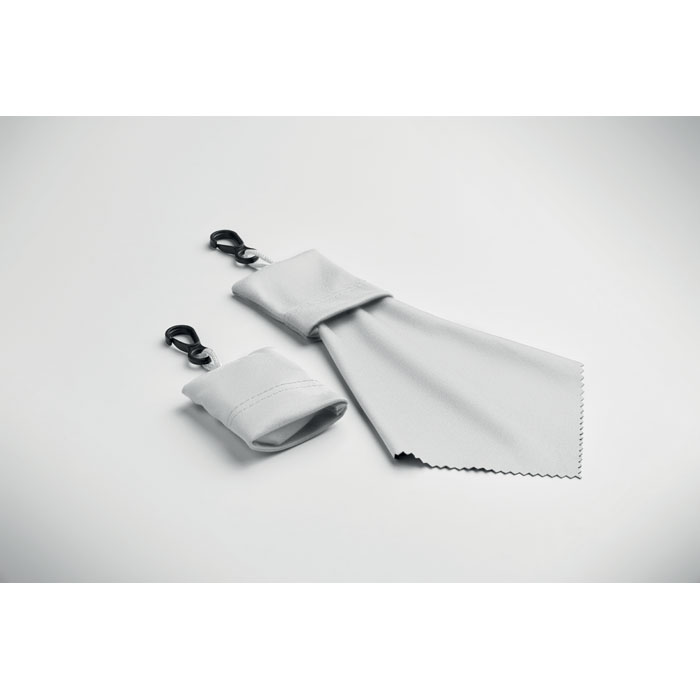 RPET cleaning cloth with self material pouch with PP plastic hanging hook.