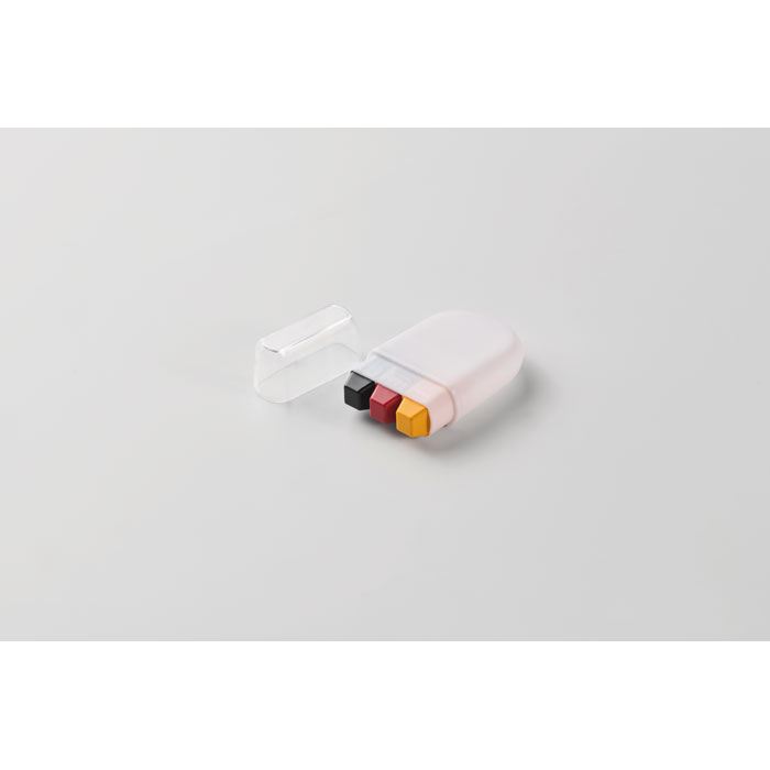 Body paint stick in national flag colours with wax paint in PP case and PS lid.