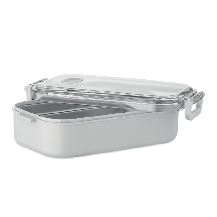 Lunch box made of PP with additional recycled stainless steel inner layer. Airtight AS lid that keeps food fresh and secure during transport. Capacity 750 ml without tray and 650 ml with tray.