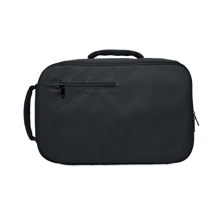 "Cabin-size carry-on extendable backpack made of 600D RPET polyester with 180o opening. Features a main compartment with two open sections, mesh division, padded 15"" laptop pocket, and luggage strap."