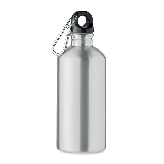 Single layer bottle in recycled stainless steel (90% recycled stainless steel and 10% stainless steel) with carabiner. 500 ml. Sublimation print available on white item only. Leak free. As this is a single walled mug, heat transfer can still occur.