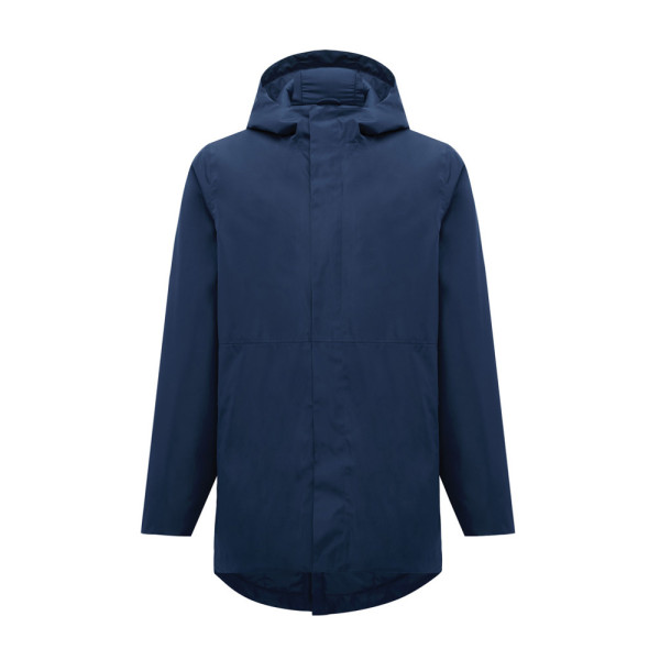 Unisex padded waterproof parka, made from 100% recycled polyester. The jacket is 4.000 mm waterproof, breathable and wind resistant. It has all features of a classic parka: longer back length, back slit, 2-way CF reversed zipper, covered by an extra front placket with four hidden snaps, clean sleeve cuffs with an extra inside half cuff, hood with stoppers at inside collar, horizontal deco seams. It is padded with 100% recycled polyester sheets and is lined with fine taffeta. On the inside there is a hidden zip at bottom hem and left wearer’s chest for easy decoration. Full garment is stitched with recycled polyester sewing thread. At back neck there is a tear-off size label with an iqoniq craft hangtag, care label at the left inside side seam. The use of genuine recycled fabric material and environmental impact claims are guaranteed, by using the AWARE™ disruptive physical tracer and blockchain technology. By scanning the QR code, you will gain access to a dedicated digital passport.