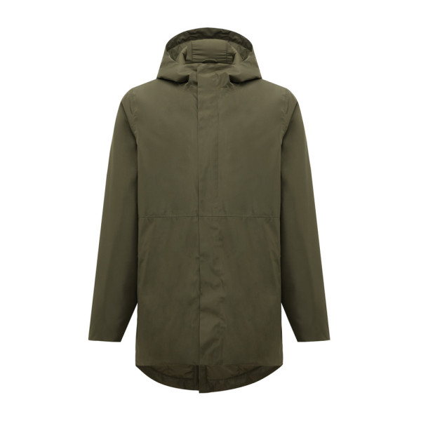 Unisex padded waterproof parka, made from 100% recycled polyester. The jacket is 4.000 mm waterproof, breathable and wind resistant. It has all features of a classic parka: longer back length, back slit, 2-way CF reversed zipper, covered by an extra front placket with four hidden snaps, clean sleeve cuffs with an extra inside half cuff, hood with stoppers at inside collar, horizontal deco seams. It is padded with 100% recycled polyester sheets and is lined with fine taffeta. On the inside there is a hidden zip at bottom hem and left wearer’s chest for easy decoration. Full garment is stitched with recycled polyester sewing thread. At back neck there is a tear-off size label with an iqoniq craft hangtag, care label at the left inside side seam. The use of genuine recycled fabric material and environmental impact claims are guaranteed, by using the AWARE™ disruptive physical tracer and blockchain technology. By scanning the QR code, you will gain access to a dedicated digital passport.