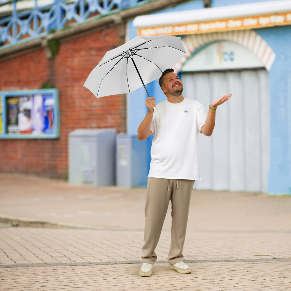 Stylish automatic open/close pocket umbrella with white design elements Convenient automatic... more