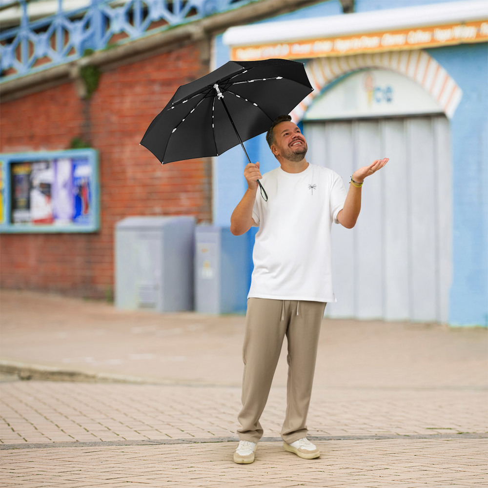 Stylish automatic open/close pocket umbrella with white design elements Convenient automatic... more