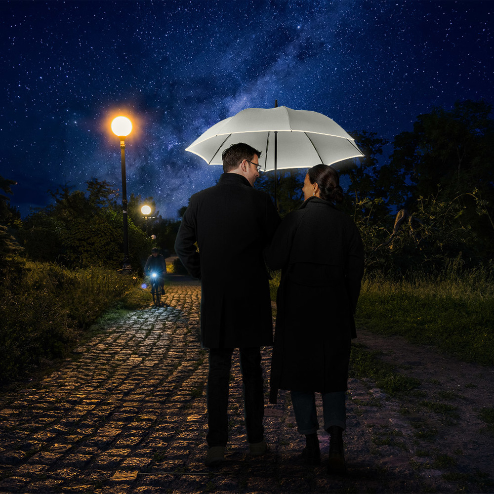 Smart medium-sized regular umbrella with fashionable reflective piping Convenient automatic... more