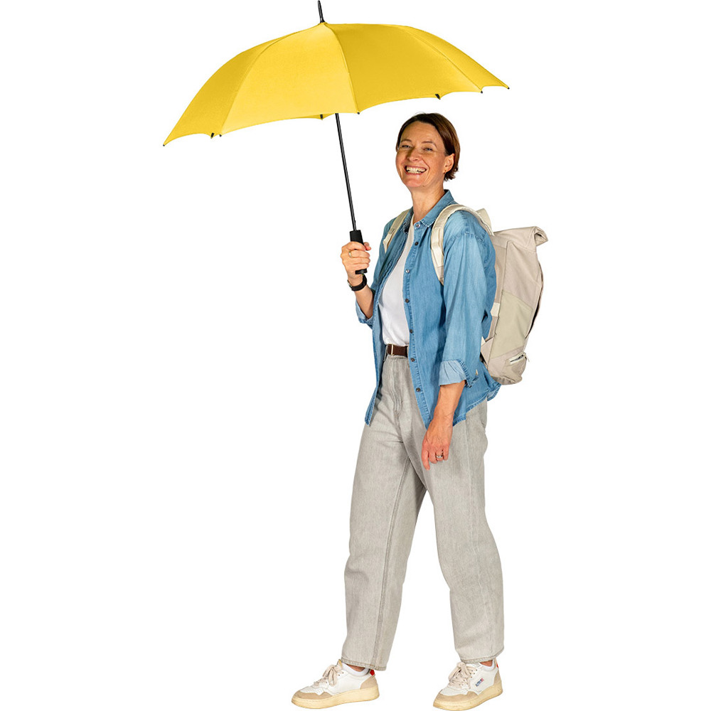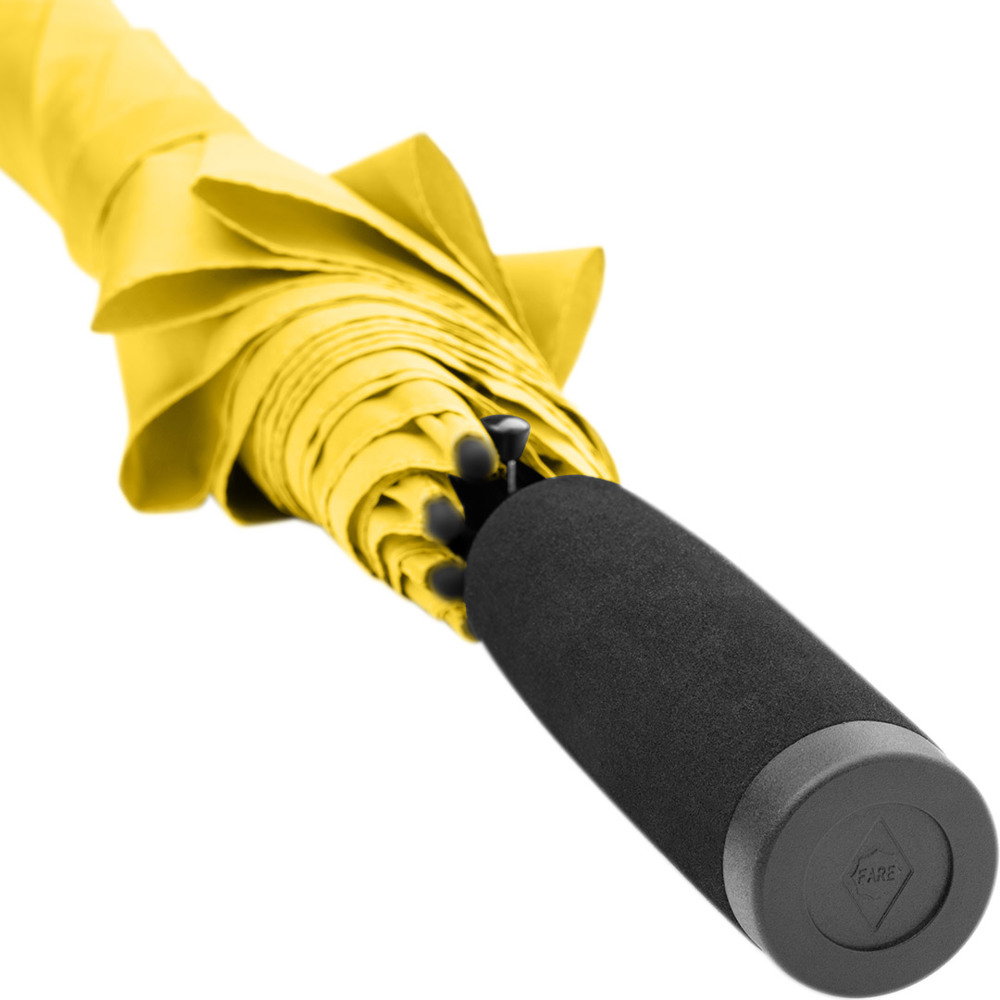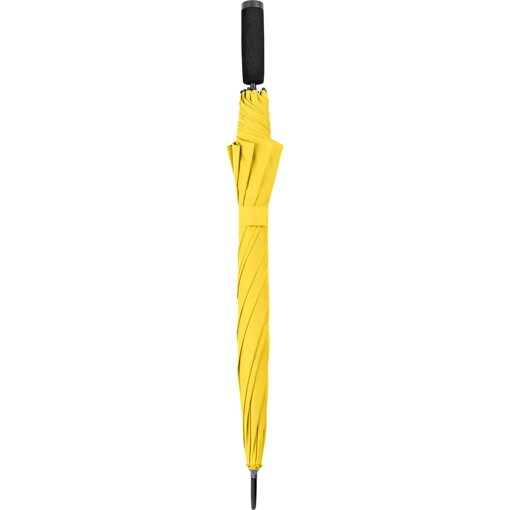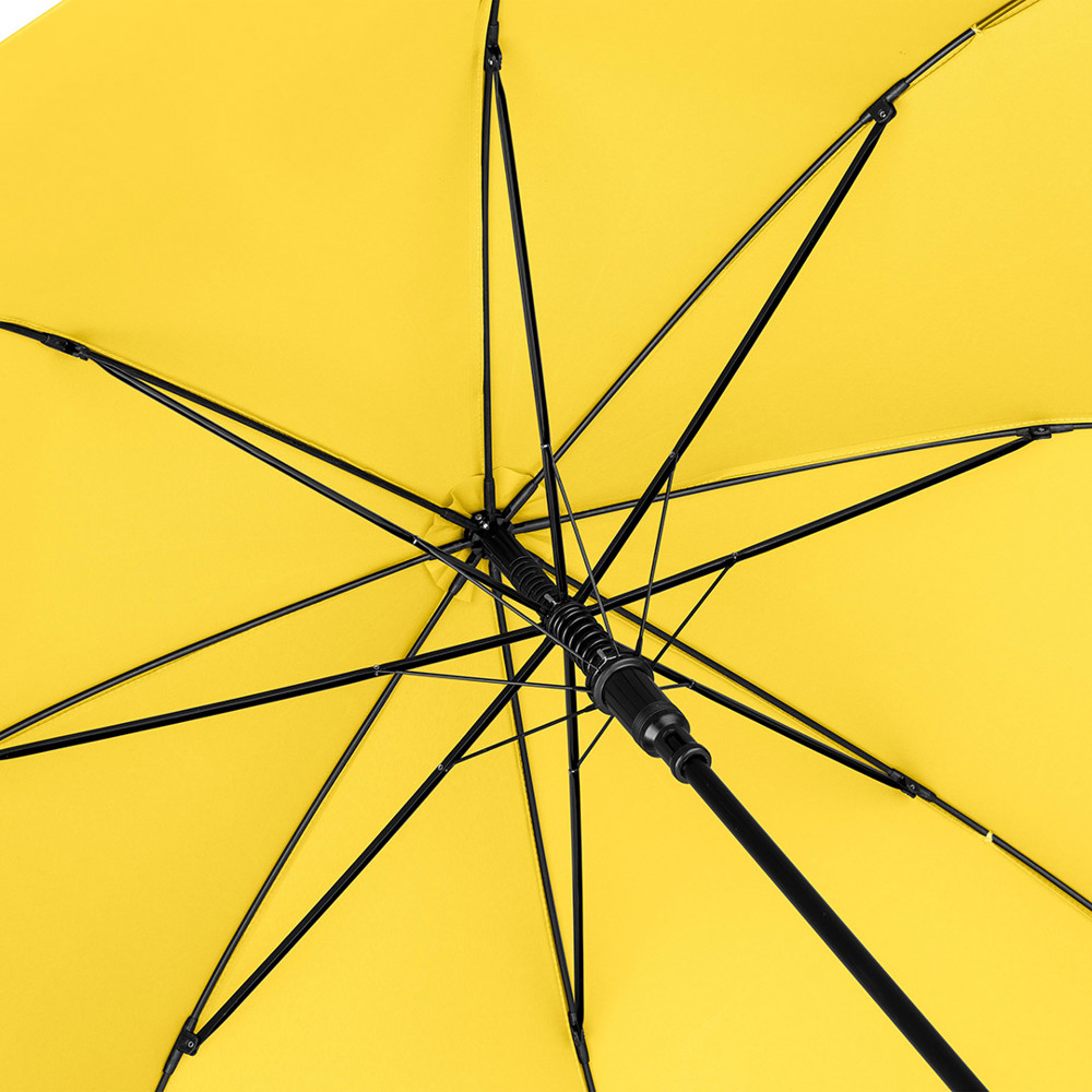 Automatic regular umbrella with excellent value for money and Windproof system Convenient automatic function for quick opening, Windproof system for higher frame flexibility and stability in windy conditions, flexible fibreglass ribs, higher corrosion protection thanks to black galvanisation of the steel shaft, comfortable soft handle with promotional labelling option