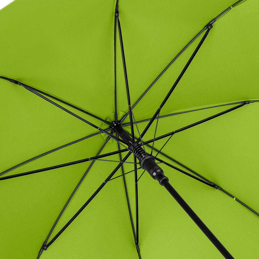 Automatic regular umbrella with excellent value for money and Windproof system Convenient automatic function for quick opening, Windproof system for higher frame flexibility and stability in windy conditions, flexible fibreglass ribs, higher corrosion protection thanks to black galvanisation of the steel shaft, comfortable soft handle with promotional labelling option