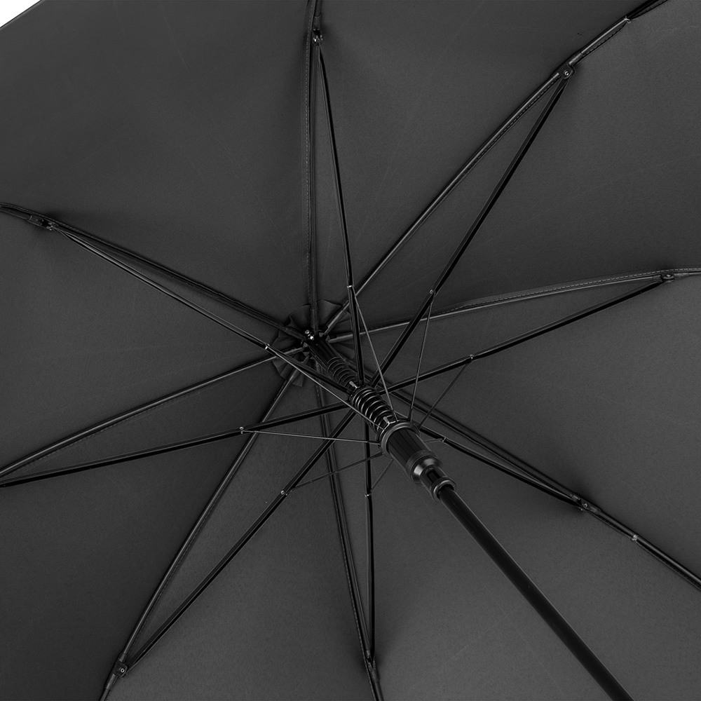 Automatic regular umbrella with excellent value for money and Windproof system Convenient automatic function for quick opening, Windproof system for higher frame flexibility and stability in windy conditions, flexible fibreglass ribs, higher corrosion protection thanks to black galvanisation of the steel shaft, comfortable soft handle with promotional labelling option