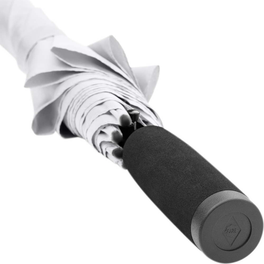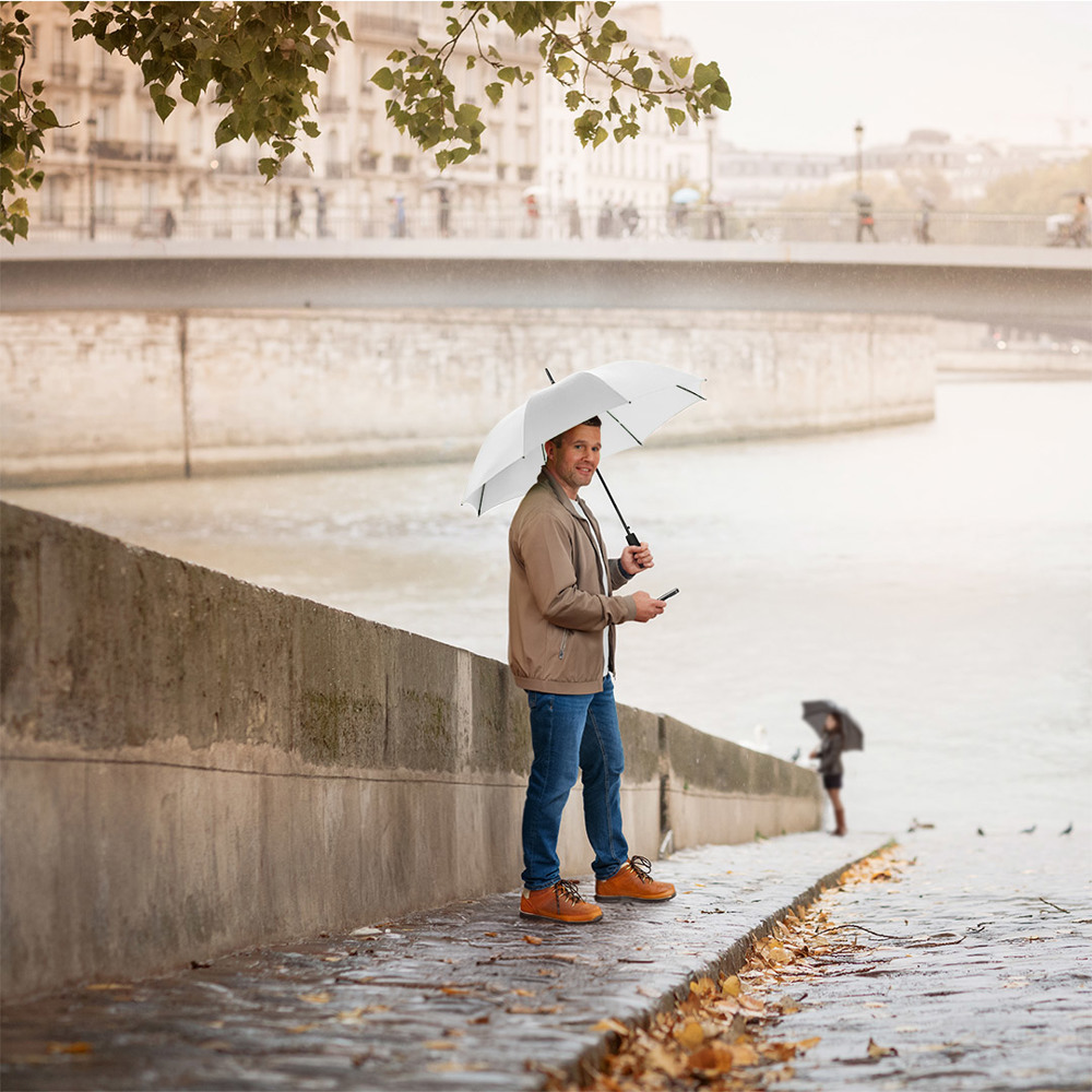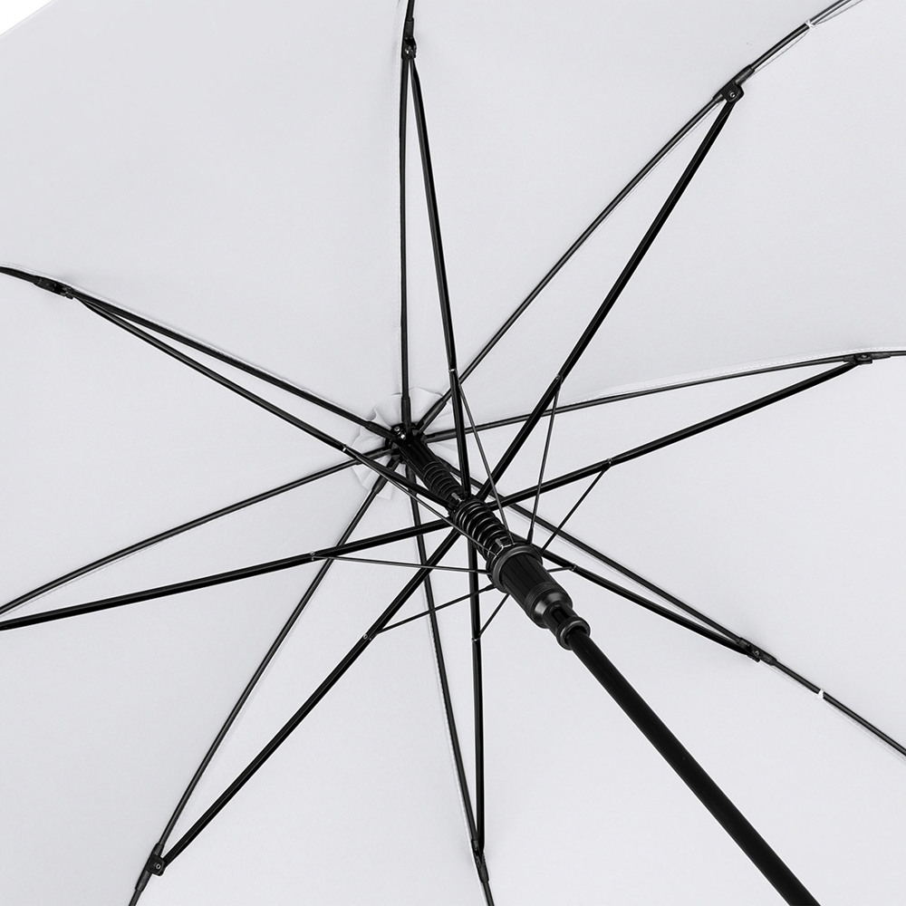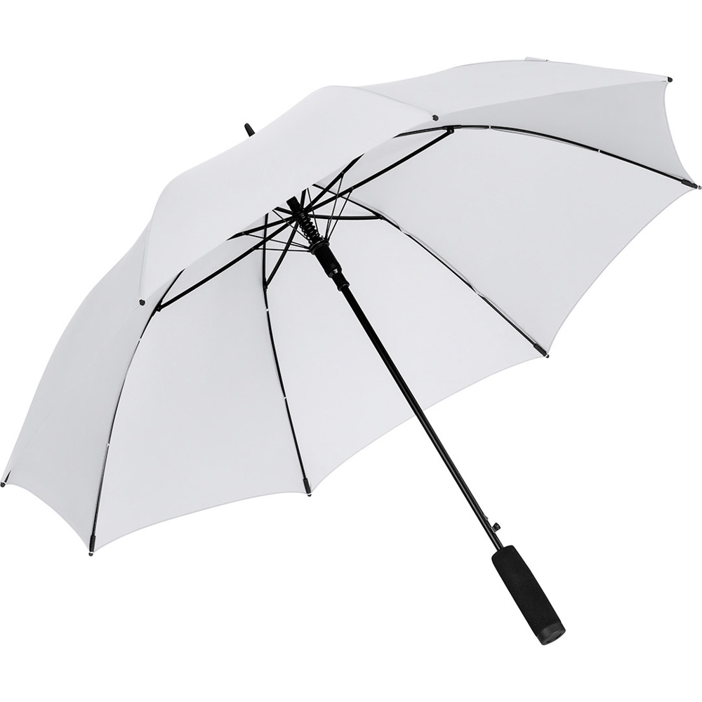 Automatic regular umbrella with excellent value for money and Windproof system Convenient automatic function for quick opening, Windproof system for higher frame flexibility and stability in windy conditions, flexible fibreglass ribs, higher corrosion protection thanks to black galvanisation of the steel shaft, comfortable soft handle with promotional labelling option