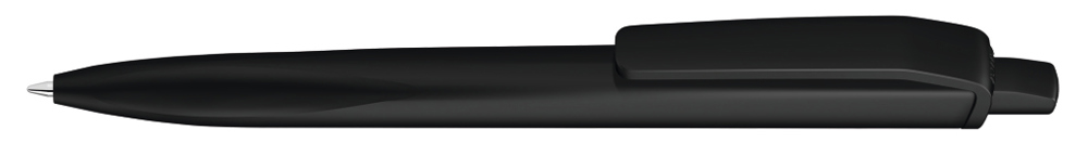 Retractable ballpoint pen with opaque matt housing, clip and push-button made from recycled ABS plastic. Ergonomically shaped grip zone.