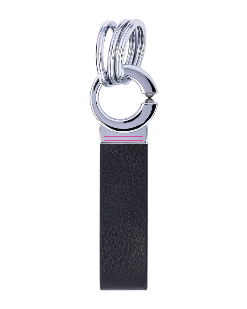 Keyring with practical "click closure", leather loop, 3 metal rings, leather, metal, chrome... more