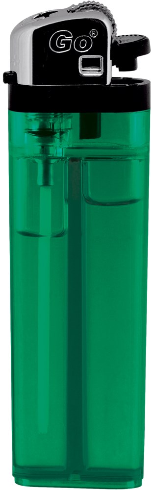 Transparent disposable lighter from the brand GO. Quality and Price make this item a perfect promotional item.