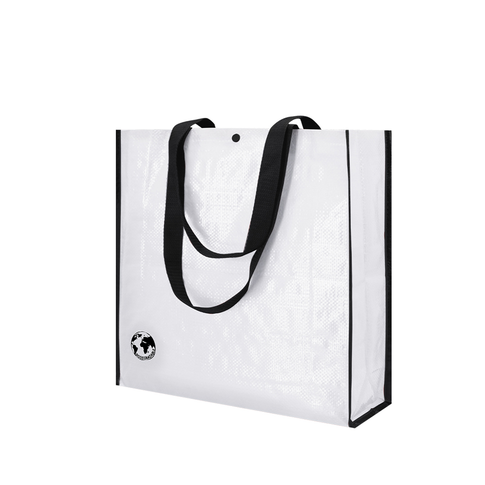 Reusable bag in resistant laminated material. With long, reinforced handles in nylon -70cm-, gussets reinforced with piping and button closure. Stitched finishing and resistance up to 12kg weight. Available in a range of bright colors.