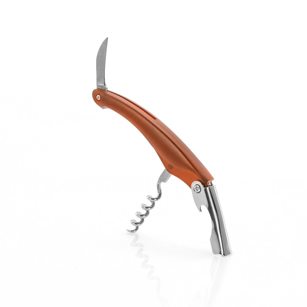 Classic corkscrew with stainless steel accessories. Includes capsule cutter and opener. Presented in an individual box.