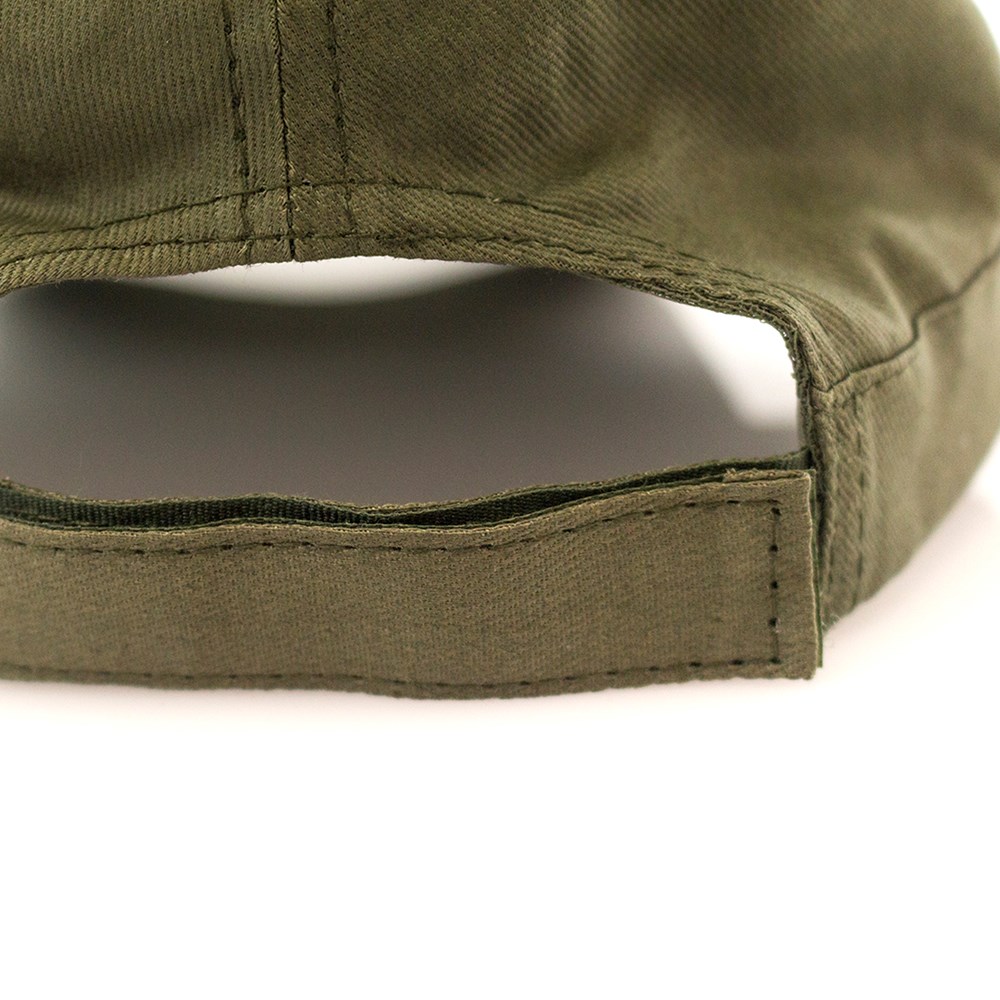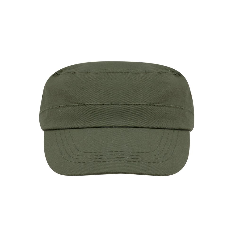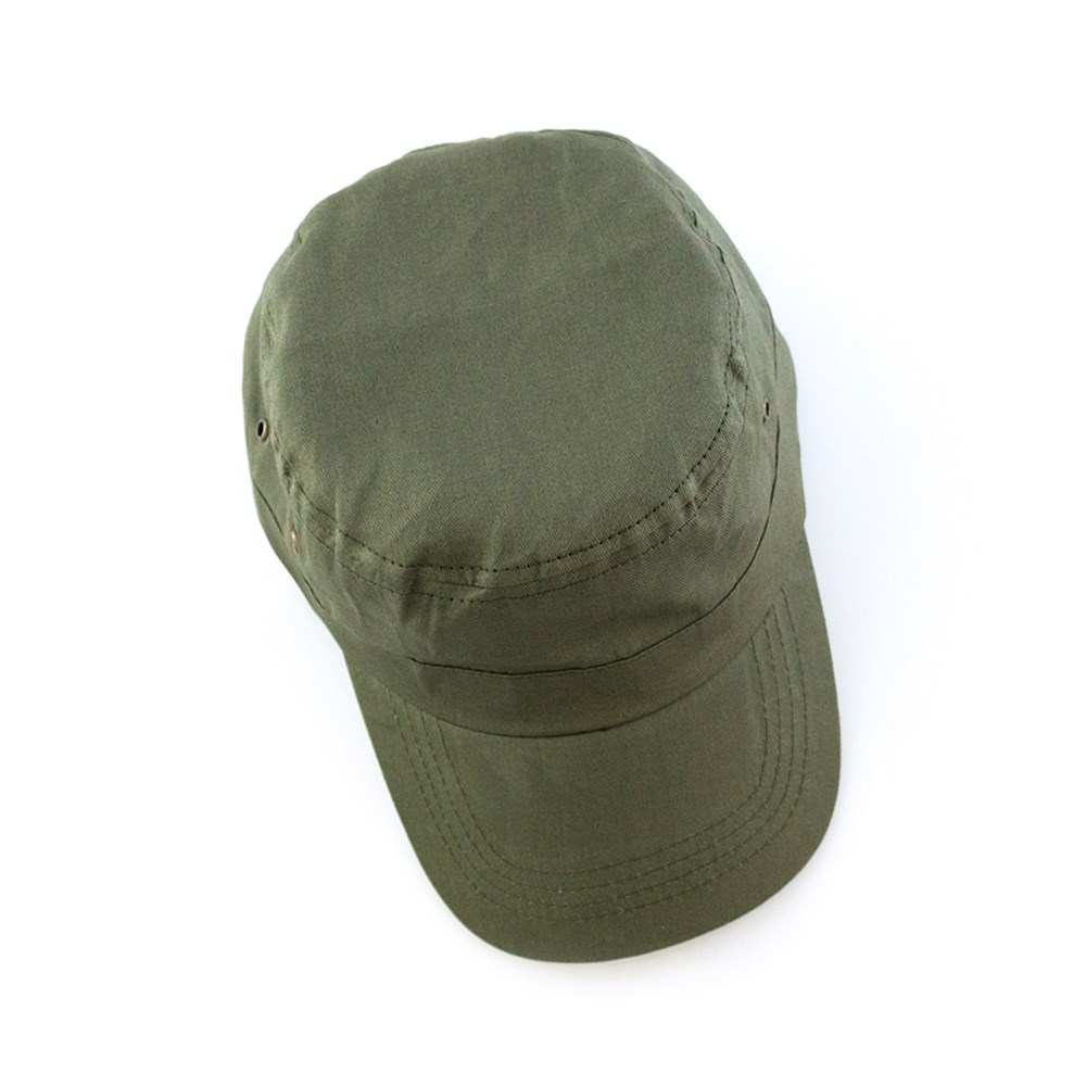 Military Type-Cap in brushed cotton material and sober colors. With lateral ventilation holes reinforced with metal ring and adjustable velcro closure.
