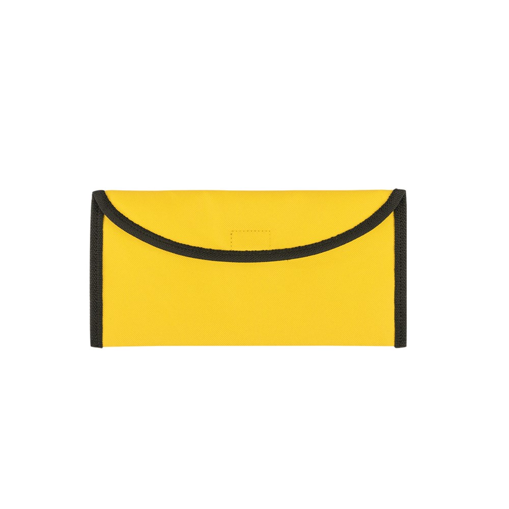 Travel document bag in resistant 600D polyester and in a wide range of bright tones. With velcro closure, lined inside and belt accessory at the back.