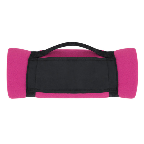 Blanket 130x160cm in a varied range of bright tones. In polar fleece material of 200g/m2 with anti-pilling treatment and carrying handle with velcro closure in soft polyester.