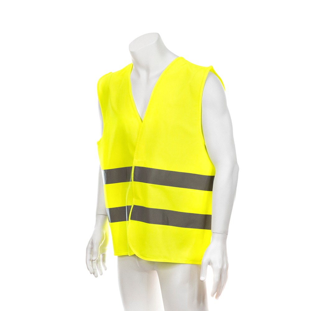 High visibility reflective vest, approved according to CE safety regulations. With double reflective strip around the body and velcro fasteners. One size fits all for adults.
