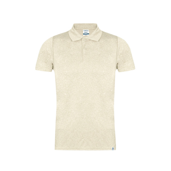 Unisex technical polo. Made from 100% recycled polyester fabric and melange effect colour. Its 150g/m2 fabric makes it a lightweight garment ideal for sports and everyday wear. Breathable fabric easy to wash and quick drying. Very soft feel and modern cut, with matching color two-button placket. Double stitched hem and sleeves for durability and resistance to intensive wear. With outer RPET label, indicative of a recycled origin product. Easily removable label and available in sizes XS, S, M, L, XL and XXL.