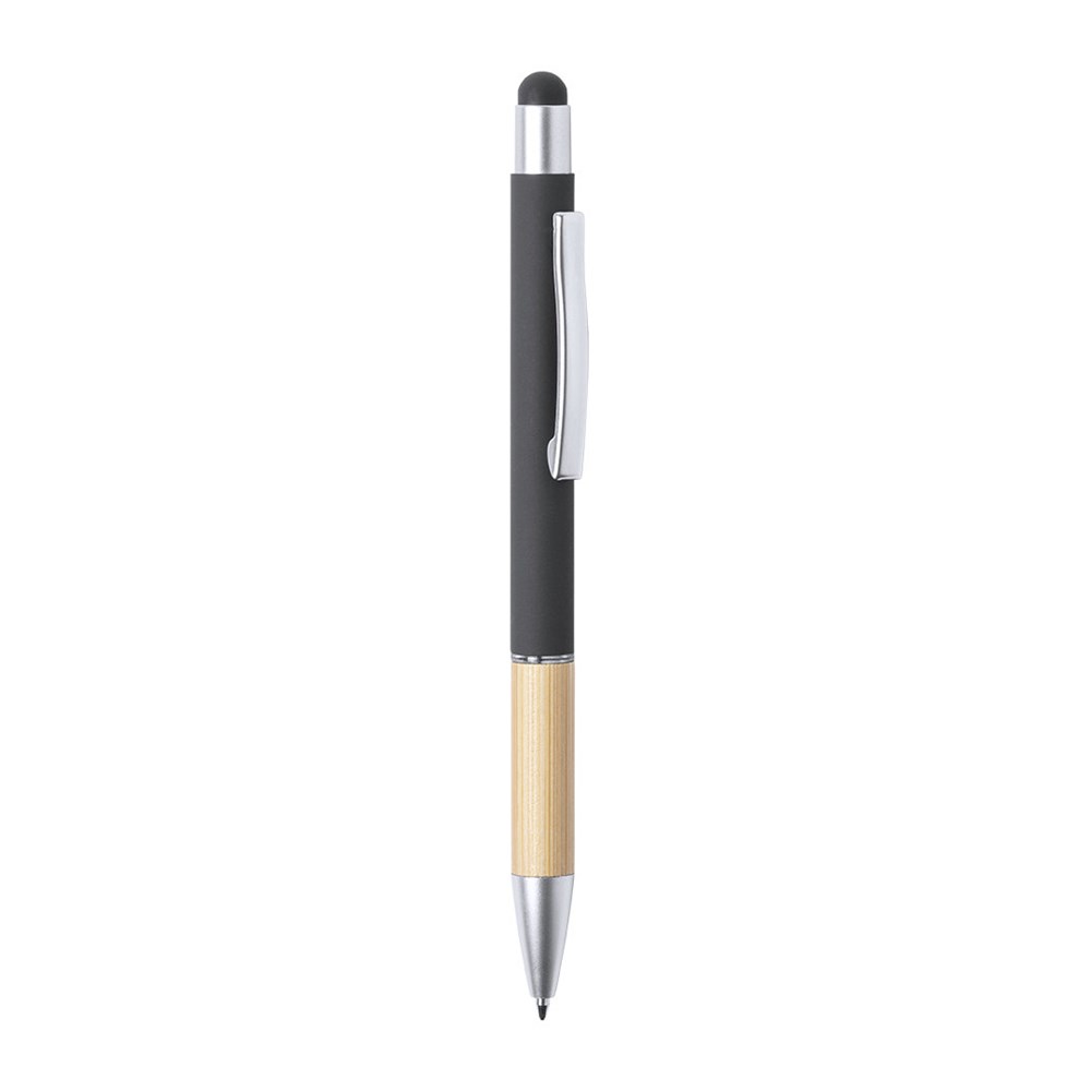 Nature line ballpen pointer with push-button mechanism. Elegant design with matt-finish aluminium barrel and bamboo grip, with matt-finish accessories. Metal clip and transparent ring, with blue ink refill. Available in a wide range of colours.