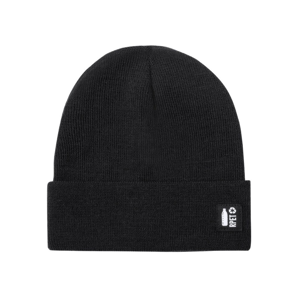 Nature line, soft and warm knitted hat in RPET polyester, made from recycled plastic to promote the reuse of plastic waste and contribute to the sustainability of the planet. Hemmed at the front and available in a wide range of colours. RPET distinctive on the outside label.