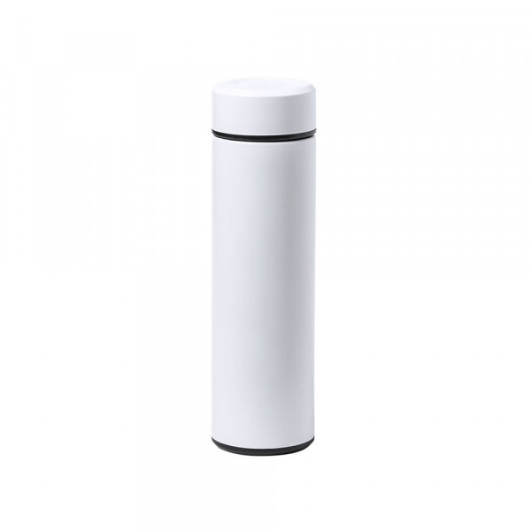 Stainless steel thermos bottle of 470ml capacity. With double wall for better and more lasting conservation of the temperature. Infusor included and easy opening system with screw. Available in a wide range of colours and presented in an attractive design box.
