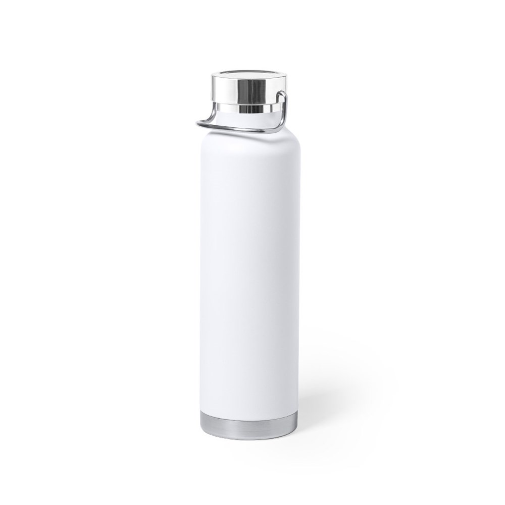 Stainless steel thermal bottle, with double layer and copper vacuum insulation. It allows you to maintain heat and cold for a longer time, reaching 12 and 48 hours respectively. With a capacity of 650ml, and available in a wide range of metallic colours. Presented in an attractive design box.