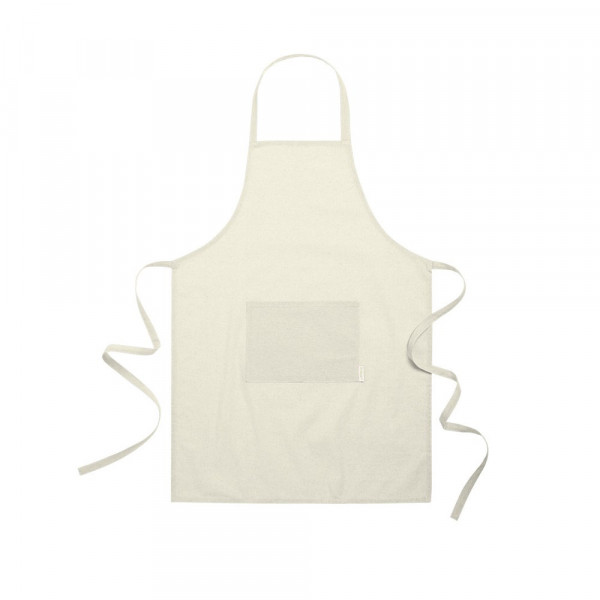 Nature line Apron, made of recycled cotton. With a front pocket and adjustment straps, fitting under the knee. Available in a wide range of colours, with recycled cotton distinctive in the label.