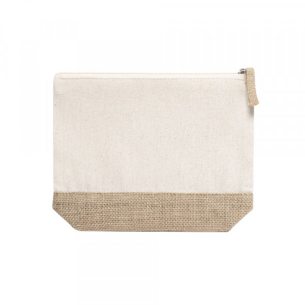Nature line beauty case in combination of laminated jute and natural cotton. With zip closure and matching jute puller.