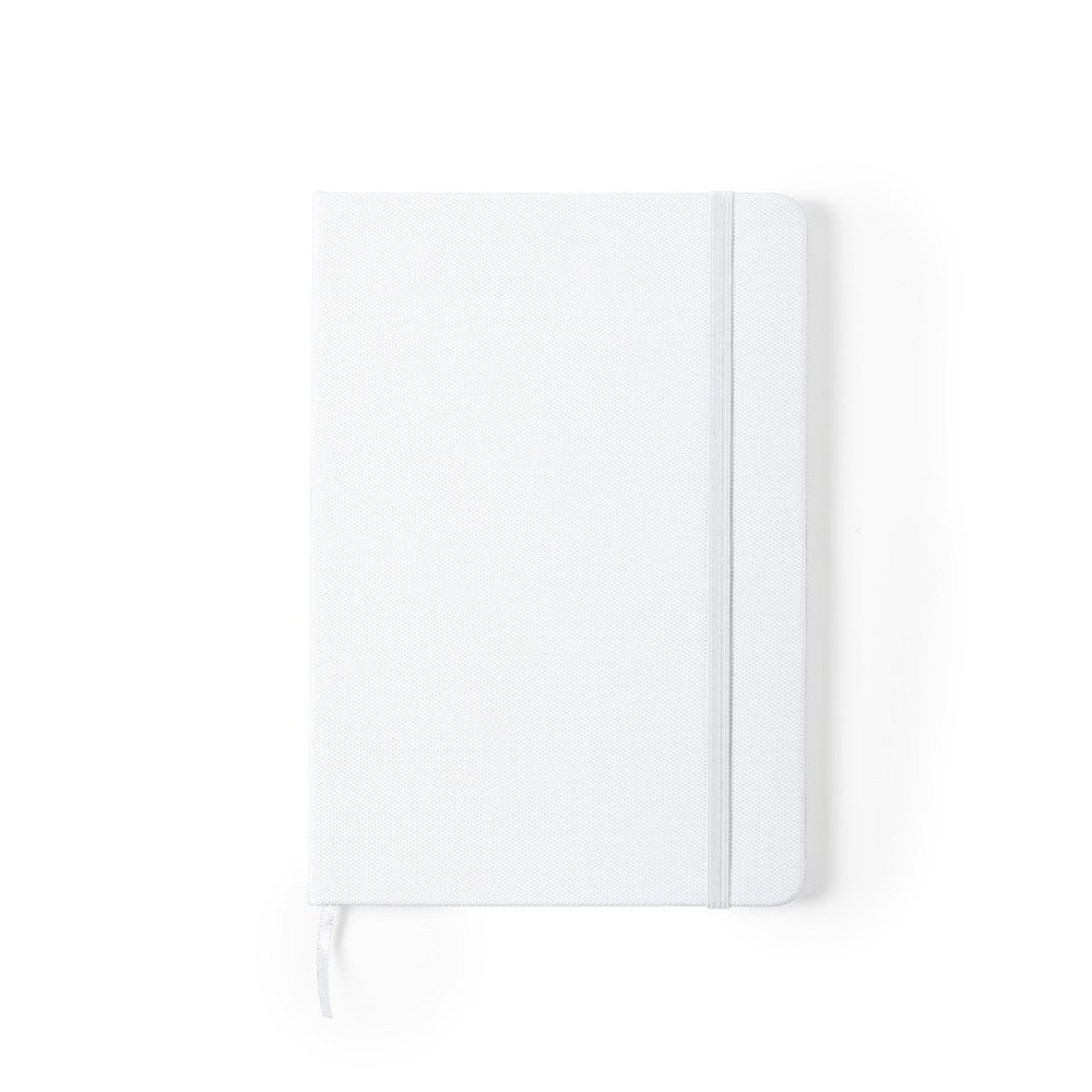 Nature line notepad with hard covers in 600D RPET, made from recycled plastic to encourage the reuse of plastic waste and contribute to the sustainability of the planet. Available in a wide range of colours, includes 80 single-stripe sheets. With elastic band and matching fabric bookmarks. RPET badge on the back.
