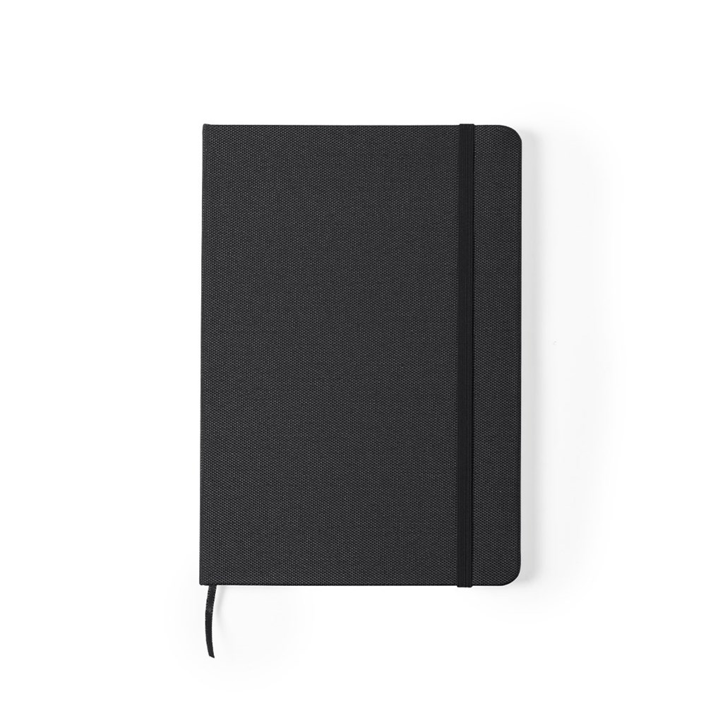 Nature line notepad with hard covers in 600D RPET, made from recycled plastic to encourage the reuse of plastic waste and contribute to the sustainability of the planet. Available in a wide range of colours, includes 80 single-stripe sheets. With elastic band and matching fabric bookmarks. RPET badge on the back.